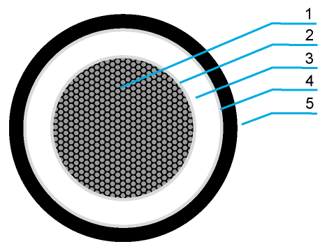 Тонкопроволочный, луженый, медный проводник (класс 5 согл. DIN VDE 0295). Для проводников, рассчитанных на номинальное напряжение в 6 кВ, предусмотрен, как правило, внутренний полупроводящий слой. Изоляционная оболочка из этиленпропиленового каучука типа 3GI3.