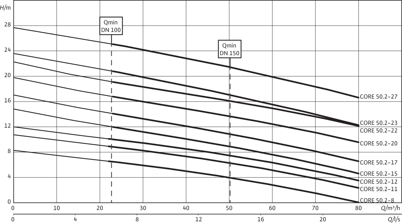 Согласно EN 12056-4,6.1 следует соблюдать скорость потока (в напорном трубопроводе) в диапазоне от 0,7 до 2,3 м/с.