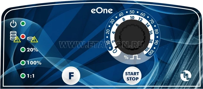 Тип управления:Аналоговое: регулировка производительности ручкой потенциометра (в %). Цифровое: 2 сенсорные кнопки для выбора режима работы - Старт/Стоп, Функции