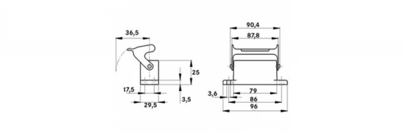 Материал Корпус: алюминиевый сплав с порошковым покрытием, серый Скоба: оцинкованная сталь Уплотнение: NBR (бутадиен . резина) Класс защиты IP 65 (закрытый )