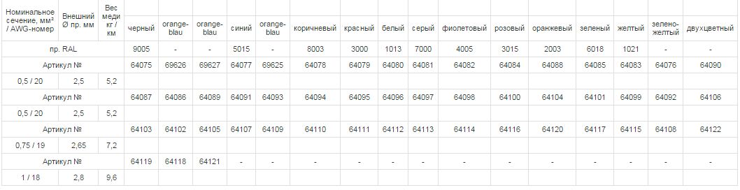 - PVC-изоляция жилы, TI3 в соответствии с DIN VDE 0207-363-3/ DIN EN 50363-3 и станд. UL 1581, класс 43, CSA-C 22.2 № 210 табл.12 класс H