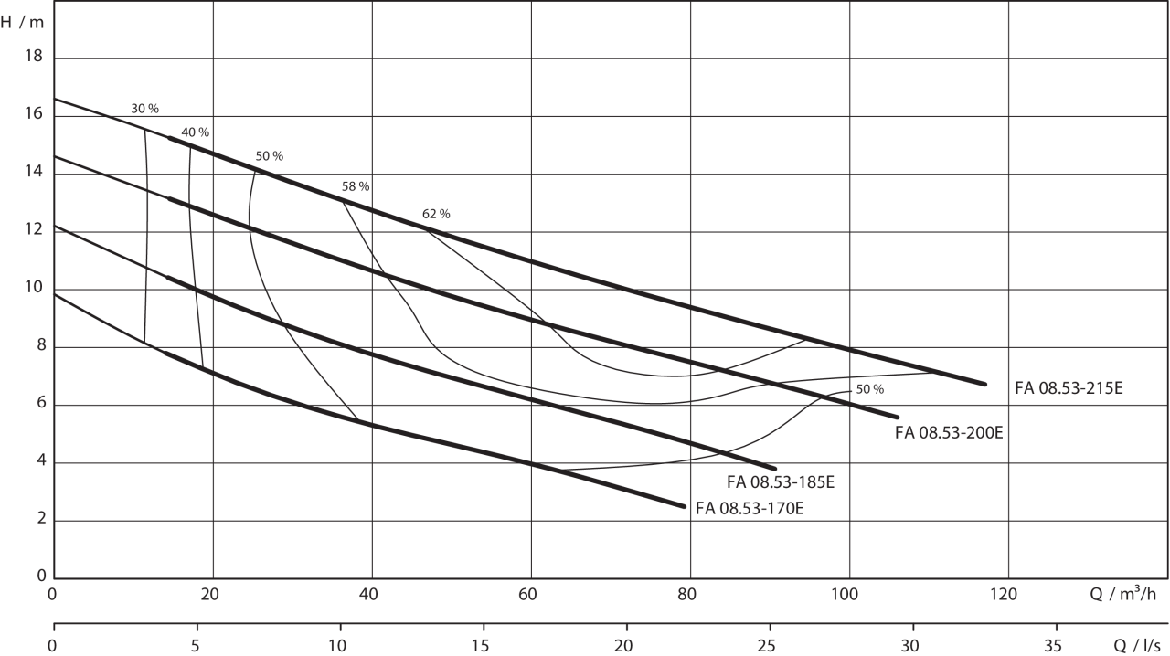 Характеристики Wilo-EMU FA 08.53E - 50 Гц - 1450 об/мин