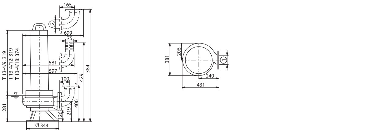 Полностью погружной дренажный насос для сточных вод для вертикальной установки в погруженном состоянии, для перекачивания сточных вод с фекалиями и твердыми материалами, а также для коммунальных и промышленных сточных вод. Агрегат полностью выполнен из серого чугуна, уплотнение со стороны насоса выполнено из карбида кремния (SiC), а уплотнение со стороны электродвигателя – из нитрильного каучука (NBR) (модель H) или карбида кремния (SiC) (модель G). Напорный патрубок с горизонтальным патрубком напорного слива и фланцевым соединением. Самоохлаждающийся электродвигатель (F-электродвигатель) или электродвигатель насоса с сухим ротором (T-электродвигатель) в исполнении для трехфазного тока для прямого или звездообразного соединения треугольником с защитой электродвигателя от перегрева (T-электродвигатель, в зависимости от типа) и уплотнительной камерой. Уплотнительную камеру также можно контролировать с помощью внешнего электрода для камеры уплотнений. Агрегаты с электродвигателем T 20.1 дополнительно оснащены камерой утечек, которая контролируется поплавковым выключателем. Водостойкий (только для T-электродвигателя) соединительный кабель длиной 10 м со свободным концом. Все агрегаты с электродвигателем насоса с сухим ротором серийно обладают сертификатом взрывозащиты.