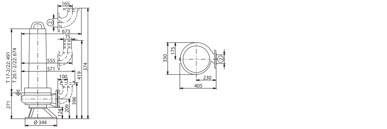 Полностью погружной дренажный насос для сточных вод для вертикальной установки в погруженном состоянии, для перекачивания сточных вод с фекалиями и твердыми материалами, а также для коммунальных и промышленных сточных вод. Агрегат полностью выполнен из серого чугуна, уплотнение со стороны насоса выполнено из карбида кремния (SiC), а уплотнение со стороны электродвигателя – из нитрильного каучука (NBR) (модель H) или карбида кремния (SiC) (модель G). Напорный патрубок с горизонтальным патрубком напорного слива и фланцевым соединением. Самоохлаждающийся электродвигатель (F-электродвигатель) или электродвигатель насоса с сухим ротором (T-электродвигатель) в исполнении для трехфазного тока для прямого или звездообразного соединения треугольником с защитой электродвигателя от перегрева (T-электродвигатель, в зависимости от типа) и уплотнительной камерой. Уплотнительную камеру также можно контролировать с помощью внешнего электрода для камеры уплотнений. Агрегаты с электродвигателем T 20.1 дополнительно оснащены камерой утечек, которая контролируется поплавковым выключателем. Водостойкий (только для T-электродвигателя) соединительный кабель длиной 10 м со свободным концом. Все агрегаты с электродвигателем насоса с сухим ротором серийно обладают сертификатом взрывозащиты.
