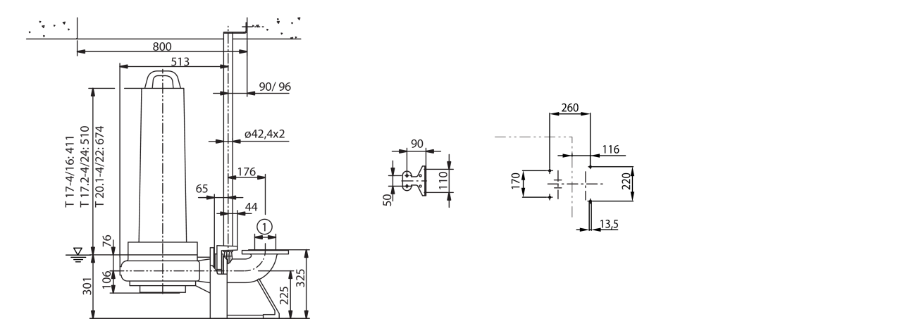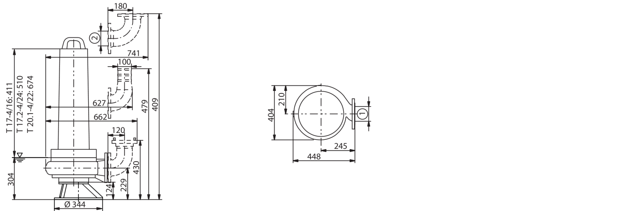 Полностью погружной дренажный насос для сточных вод для вертикальной установки в погруженном состоянии, для перекачивания сточных вод с фекалиями и твердыми материалами, а также для коммунальных и промышленных сточных вод. Агрегат полностью выполнен из серого чугуна, уплотнение со стороны насоса выполнено из карбида кремния (SiC), а уплотнение со стороны электродвигателя – из нитрильного каучука (NBR) (модель H) или карбида кремния (SiC) (модель G). Напорный патрубок с горизонтальным патрубком напорного слива и фланцевым соединением. Самоохлаждающийся электродвигатель (F-электродвигатель) или электродвигатель насоса с сухим ротором (T-электродвигатель) в исполнении для трехфазного тока для прямого или звездообразного соединения треугольником с защитой электродвигателя от перегрева (T-электродвигатель, в зависимости от типа) и уплотнительной камерой. Уплотнительную камеру также можно контролировать с помощью внешнего электрода для камеры уплотнений. Агрегаты с электродвигателем T 20.1 дополнительно оснащены камерой утечек, которая контролируется поплавковым выключателем. Водостойкий (только для T-электродвигателя) соединительный кабель длиной 10 м со свободным концом. Все агрегаты с электродвигателем насоса с сухим ротором серийно обладают сертификатом взрывозащиты.