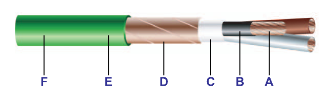 Гибкий силовой и контрольный кабель для фиксированной установки с экраном из медной ленты и изоляцией HEPR G7. Огнеупорный, без галогенов, с низкой эммисией дыма, токсических и коррозийных газов, бензо-маслостойкий (oil resistant).