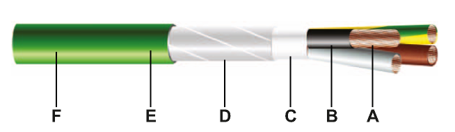 Гибкий силовой и контрольный кабель для стационарной установки с броней из стальных луженых лент и высококачественной изоляцией HEPR G7. Огнестойкий, без галогенов и с низкой эмиссией дыма, токсических и коррозивных газов, бензо-маслостойкий (oil resistant).