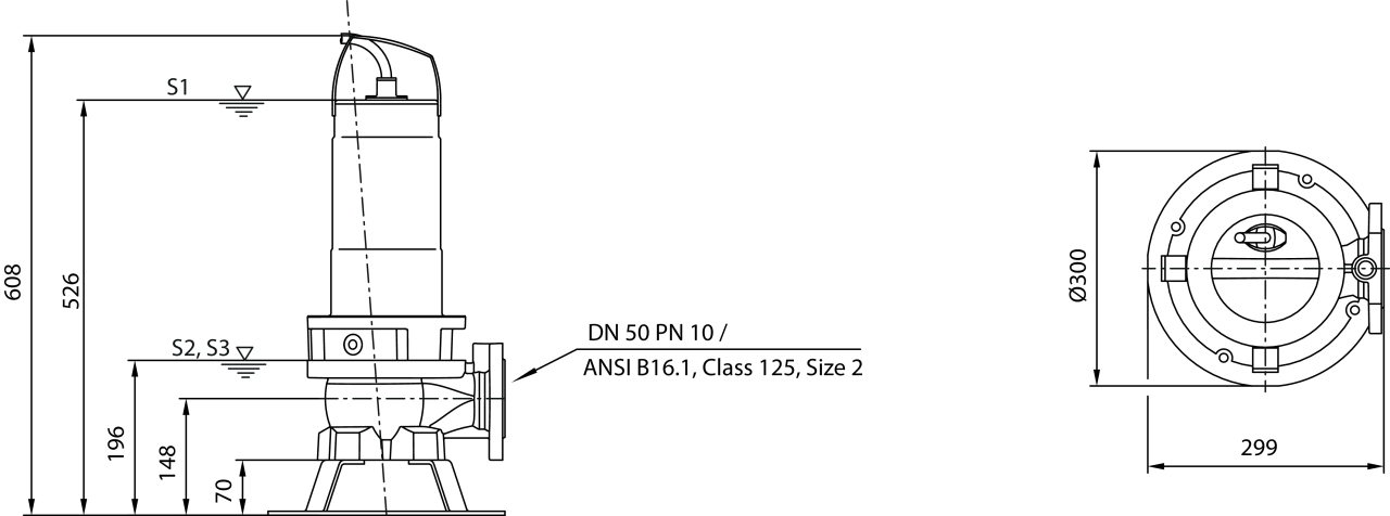 Полностью погружной дренажный насос для отвода сточных вод для стационарной и мобильной установки в погруженном состоянии, для перекачивания загрязненной воды и сточных вод с фекалиями (область применения согласно EN 12050). Гидравлический корпус и рабочее колесо из серого чугуна, корпус электродвигателя из нержавеющей стали. Электродвигатель насоса с сухим ротором в исполнении для однофазного тока, со встроенным рабочим конденсатором, камерой уплотнений и автоматически срабатывающим датчиком температуры обмотки электродвигателя. Соединительный кабель длиной 10 м с установленной вилкой с заземляющим контактом. Уплотнение со стороны перекачиваемой жидкости и со стороны электродвигателей осуществляется двумя скользящими торцевыми уплотнениями независимо от направления вращения.