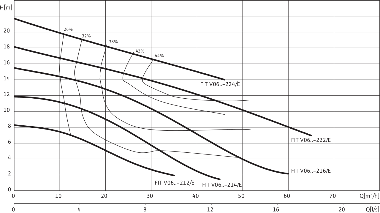 Характеристики Wilo-Rexa FIT V06.. - 50 Гц - Число полюсов: 2