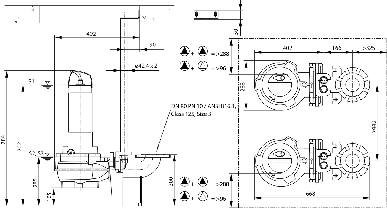 Wilo-Rexa FIT V08-42.. - Стационарная установка в погруженном состоянии