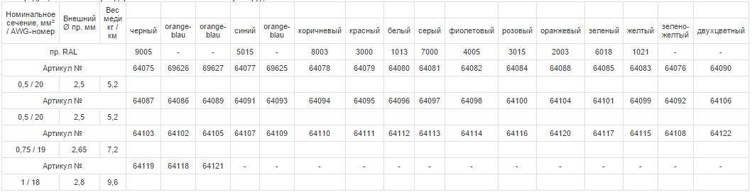 - Цветовая маркировка жил в соответствии с DIN VDE 0293