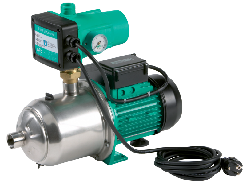 Установка с центробежным насосом в компактном исполнении с горизонтальным всасывающим и вертикальным напорным патрубком, которая состоит из следующих компонентов: самовсасывающий многоступенчатый горизонтальный высоконапорный центробежный насос с низким уровнем шума со сквозным насосным валом электродвигателя и не зависящим от направления вращения скользящим торцовым уплотнением. Напрямую присоединенный фланцами однофазный электродвигатель со встроенным термическим защитным выключателем и конденсатором. Система управления насосом с электронным устройством контроля давления и потока, встроенной защитой от сухого хода и обратным клапаном. Гидравлический всасывающий тракт нового типа, особенно подходящий для использования дождевой воды из цистерн и глубоко расположенных резервуаров. Все детали, находящиеся в контакте с перекачиваемой средой, не подвержены коррозии. Насосная установка предварительно установлена в готовом к подключению виде и подключается с помощью кабеля длиной 3 м и сетевого штекера.