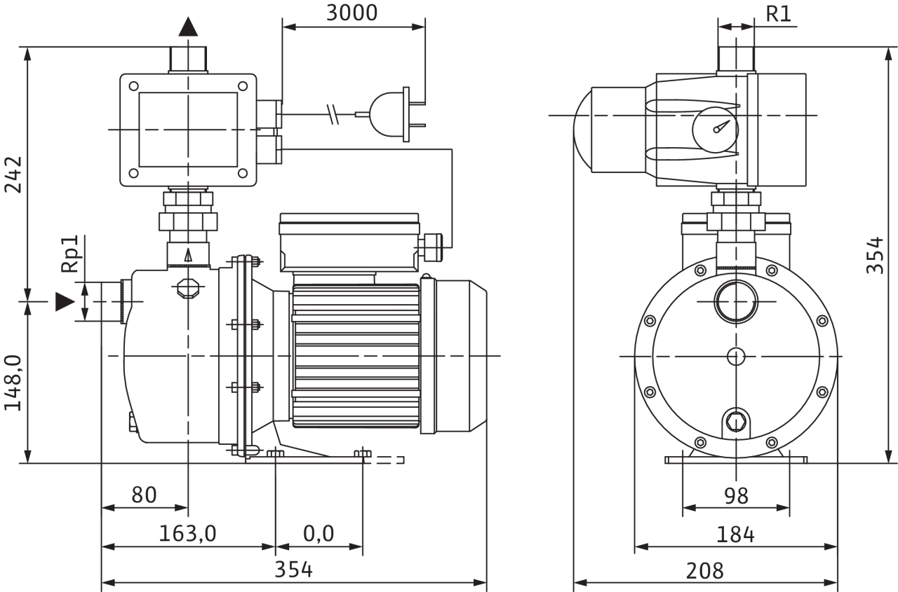 Компактная центробежная насосная установка с горизонтальным всасывающим и вертикальным напорным патрубком, которая состоит из самовсасывающего одноступенчатого струйного насоса, вкл. несущую раму. Напрямую присоединенный фланцами однофазный электродвигатель со встроенным термическим защитным выключателем и конденсатором.