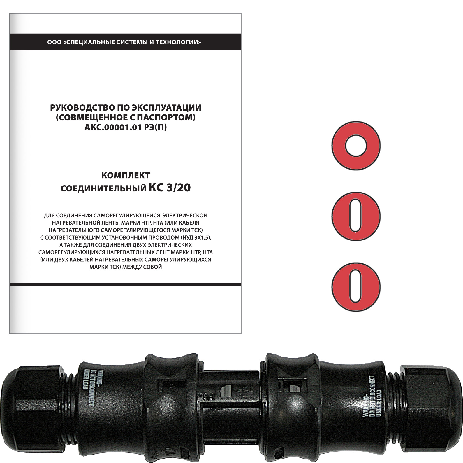 Комплект КС 3/20 предназначен для соединения саморегулирующегося нагревательного кабеля с установочным проводом, а так же для соединения двух саморегулирующихся нагревательных кабелей между собой.