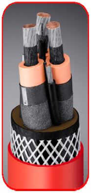 Токопроводящие жилы скручены вокруг полупроводящего центра, защитный проводник разделен на три части, симметрично расположенные в промежутках основных жил, заполнение пустот