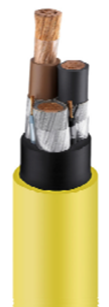 Конструкция: три экранированных токоведущих жилы с жилами управления или без них.