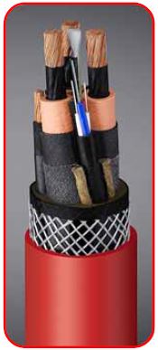 Область применения аналогична кабелю RHEYFIRM NTSCGEWTOEUS. Конструктивно три основные токоведущие жилы скручены с расположенными в промежутках защитной жилой и оптоволоконным элементом.