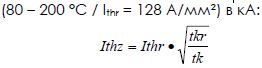 Максимально допустимая температура проводника при КЗ: 200 °C