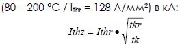 Максимально допустимая температура проводника при КЗ: 200 °C