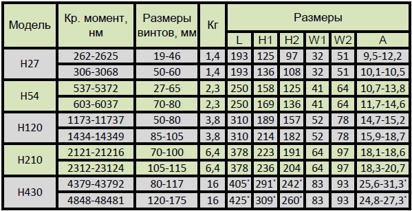 Основные характеристики гайковертов серии H (фланцевый гайковёрт)