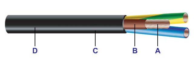 Двухжильный: голубой-коричневый; Трехжильный: голубой-коричневый-желтозеленый;