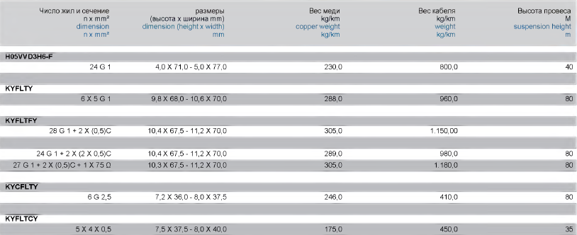 | 3000982 | KYFLTFY-JZ | PVC-FLACHLEITUNG MIT TRAGORGAN | 10,0 X 67,5 - 11,2 X 72,4 | 28G1+2X(0,5)C | 307 | 1 150,00 |