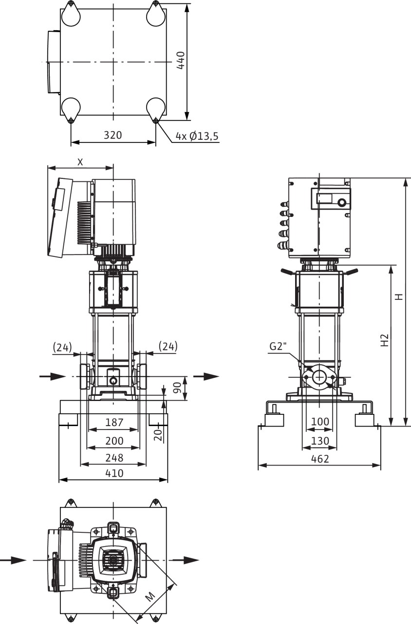 Высокоэффективный многоступенчатый высоконапорный центробежный насос с электронно-коммутируемым двигателем, вертикального исполнения, с интегрированным приводом High-Efficiency Drive и линейными подсоединениями. Встроенный частотный преобразователь позволяет осуществлять плавную регулировку частоты вращения, давления и ПИД-регулировку.