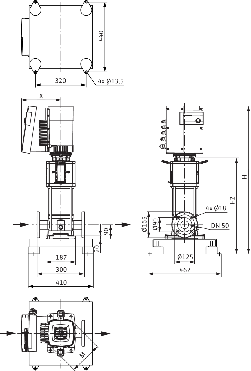 Высокоэффективный многоступенчатый высоконапорный центробежный насос с электронно-коммутируемым двигателем, вертикального исполнения, с интегрированным приводом High-Efficiency Drive и линейными подсоединениями. Встроенный частотный преобразователь позволяет осуществлять плавную регулировку частоты вращения, давления и ПИД-регулировку.