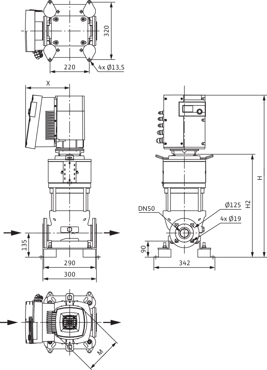 | Номинальный внутренний диаметр фланца (с напорной стороны) | DN 50 |