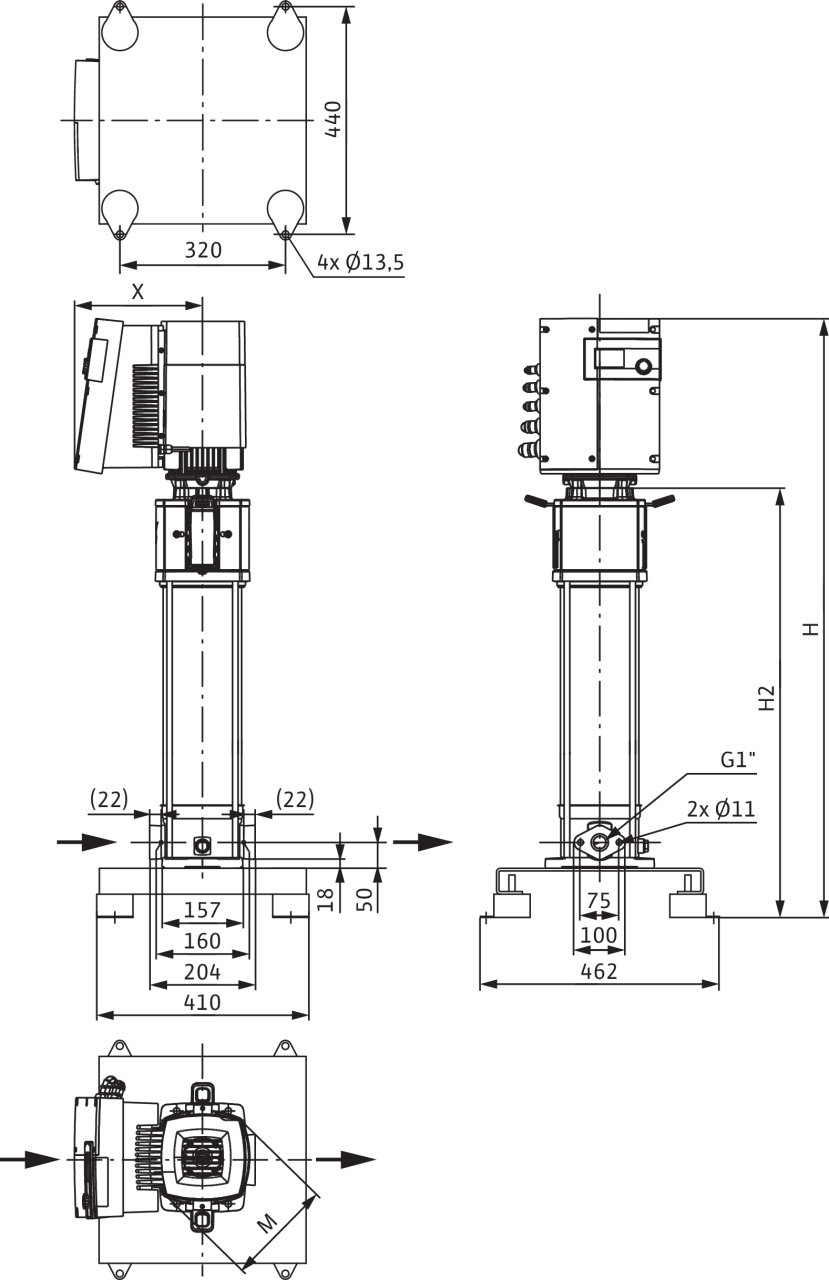 Высокоэффективный многоступенчатый высоконапорный центробежный насос с электронно-коммутируемым двигателем, вертикального исполнения, с интегрированным приводом High-Efficiency Drive и линейными подсоединениями. Встроенный частотный преобразователь позволяет осуществлять плавную регулировку частоты вращения, давления и ПИД-регулировку.