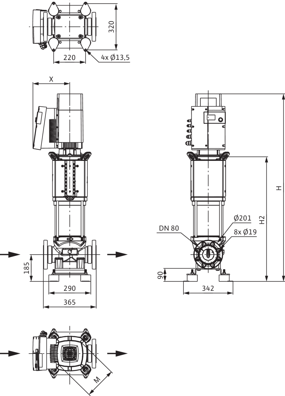 | Номинальный внутренний диаметр фланца (с напорной стороны) | DN 80 |