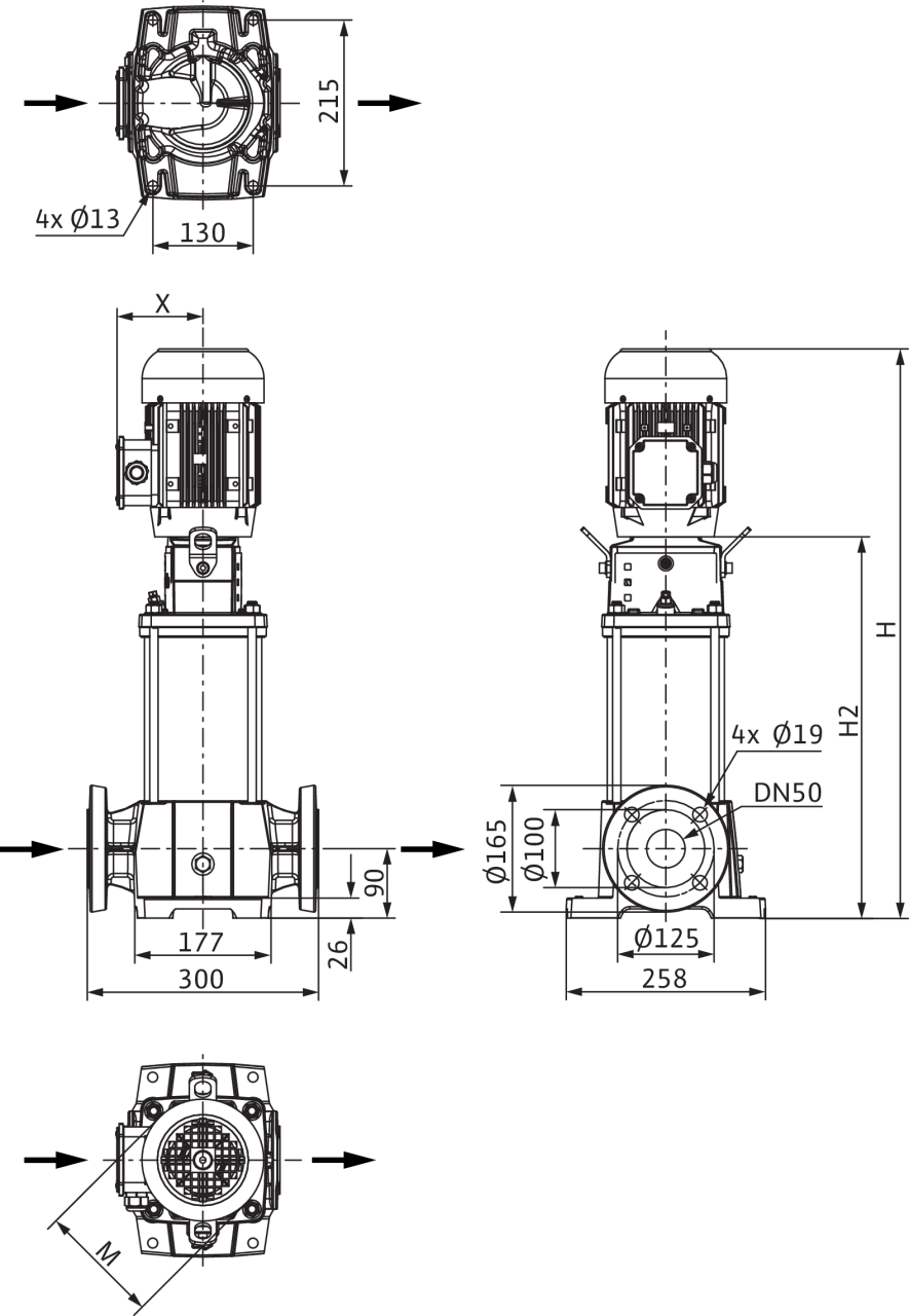 | Номинальный внутренний диаметр фланца (с напорной стороны) | DN 50 |