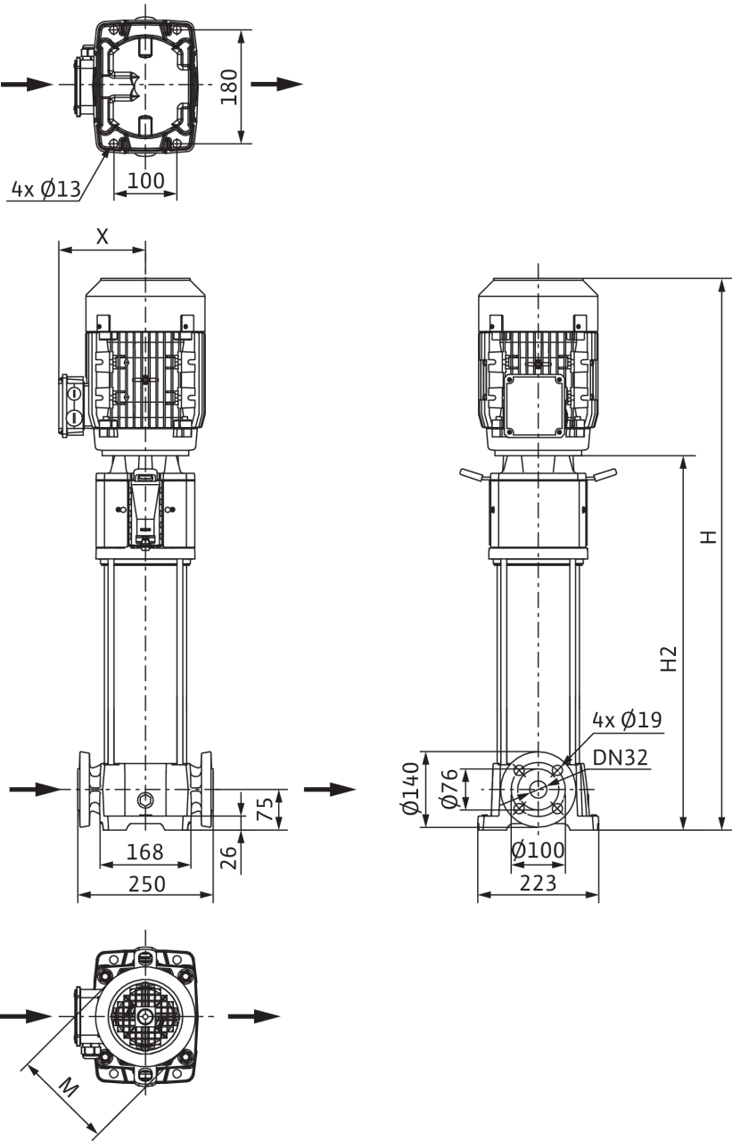 | Номинальный внутренний диаметр фланца (с напорной стороны) | DN 32 |