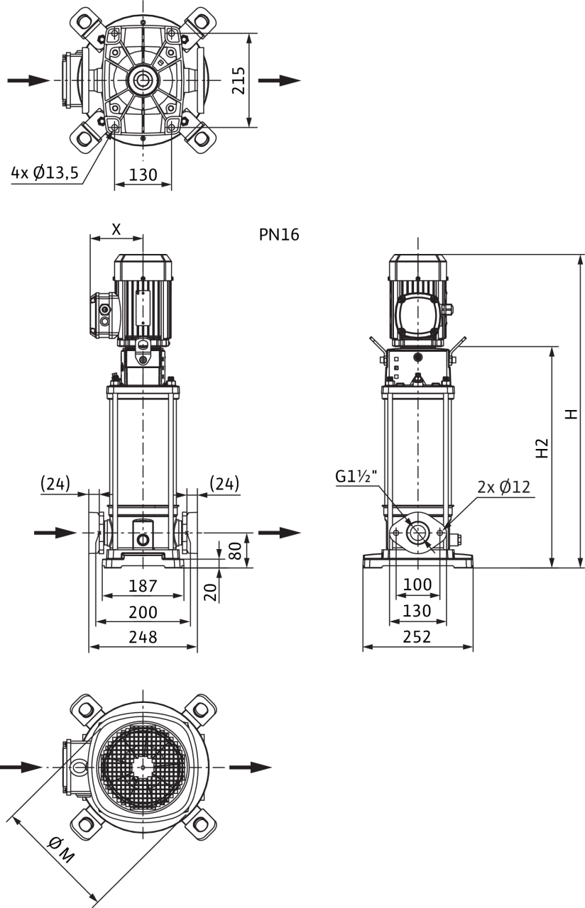 | Уровень номинального давления (с напорной стороны) PN | PN 16 |