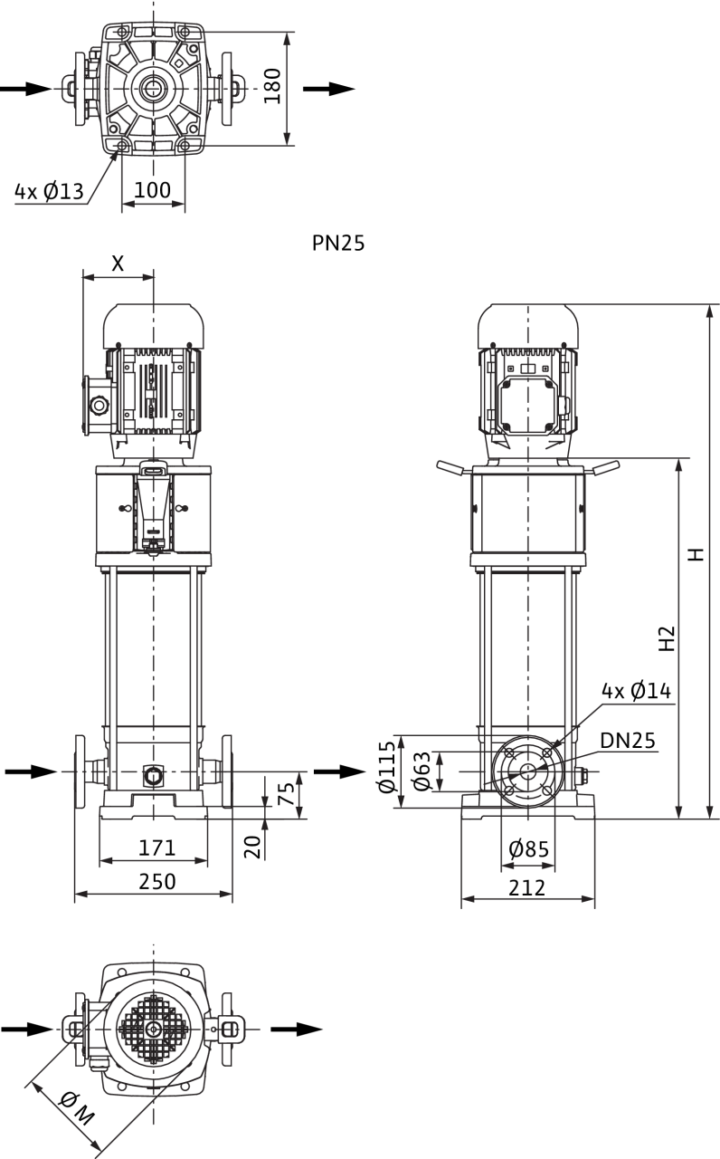 | Уровень номинального давления (с напорной стороны) PN | PN 25 |
