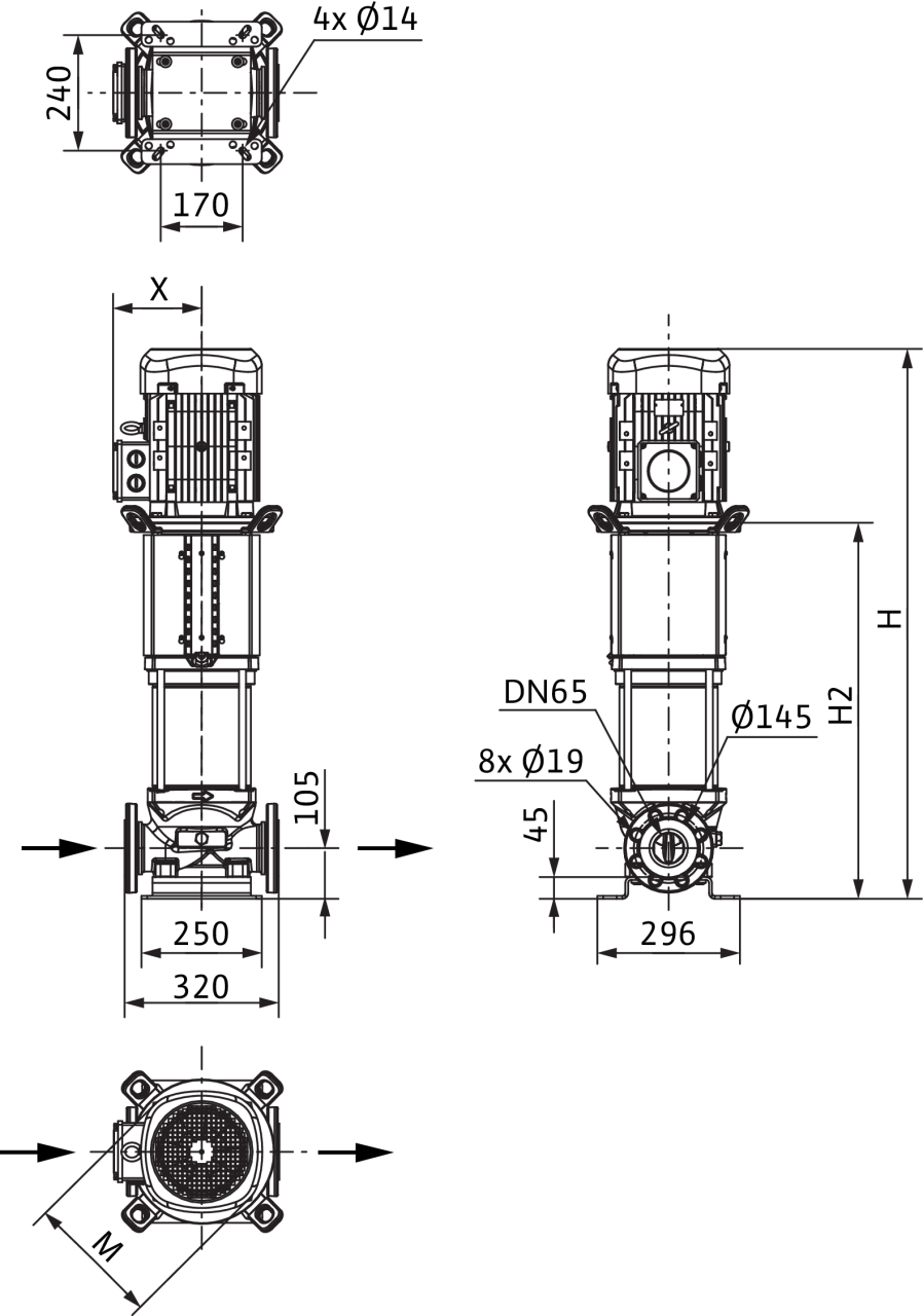| Номинальный внутренний диаметр фланца (на стороне всасывания) | DN 65 |