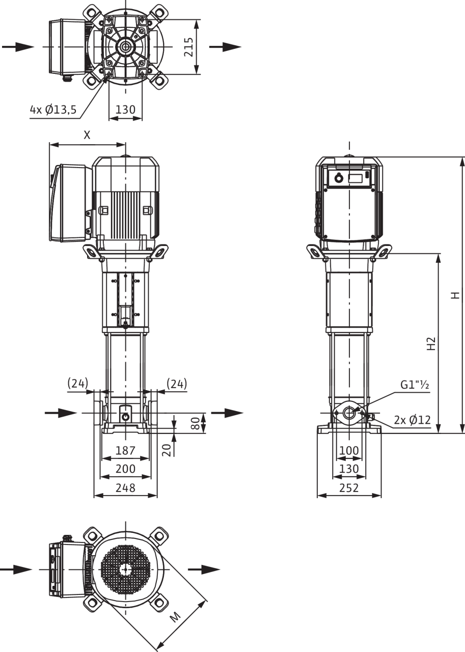 Высокоэффективный высоконапорный центробежный насос вертикального исполнения с линейными подсоединениями, электродвигателем класса IE4 согласно IEC и с встроенным частотным преобразователем с воздушным охлаждением. Встроенный частотный преобразователь позволяет осуществлять плавную регулировку частоты вращения, давления и ПИД-регулировку.