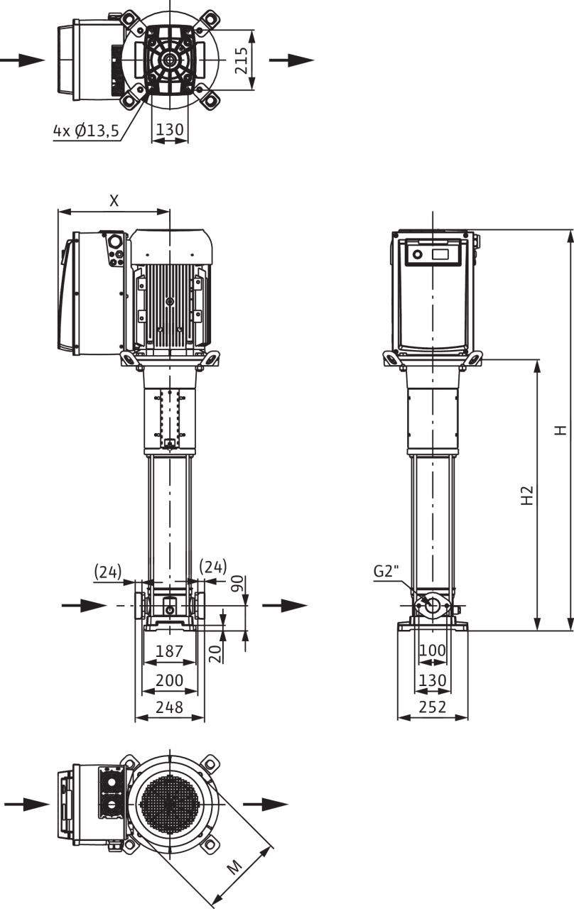 Высокоэффективный высоконапорный центробежный насос вертикального исполнения с линейными подсоединениями, электродвигателем класса IE4 согласно IEC и с встроенным частотным преобразователем с воздушным охлаждением. Встроенный частотный преобразователь позволяет осуществлять плавную регулировку частоты вращения, давления и ПИД-регулировку.