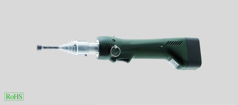 Electro-hydraulic circlip pliers for threadless plastic cable gland. Combined with the correct insert, the pliers can be used for all HELUFAST cable glands. With rechargeable NIMH battery adjustable compression and automatic return. The metal plier insert is simple to change by hand.