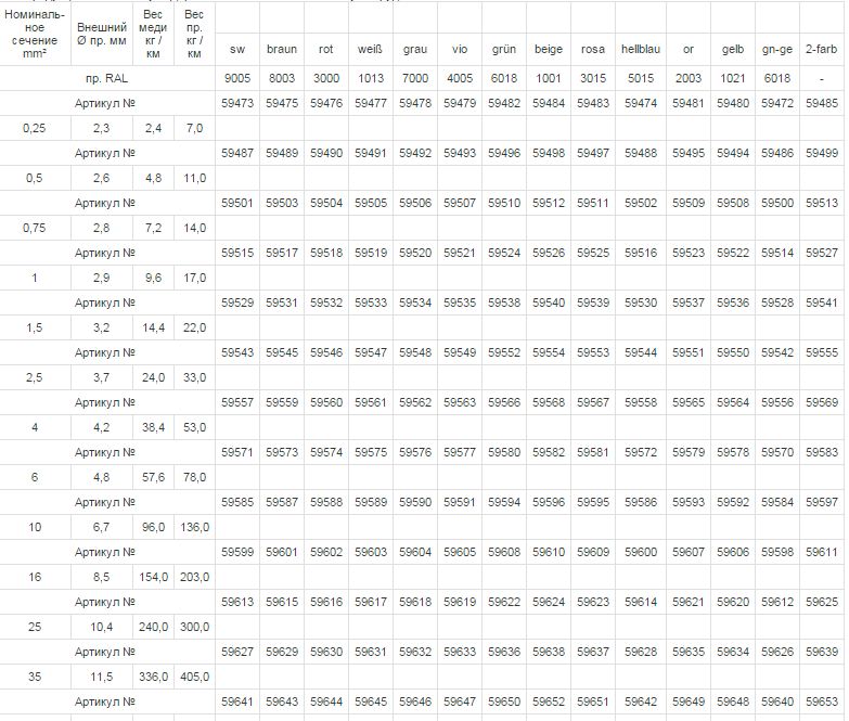 - Медные лужёные тонкопроволочные проводники в соответствии с DIN VDE 0295 класс 5, BS 6360 кл. 5 или IEC 60228 кл. 5
