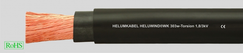 Кабель WK 303w предназначен для гибкого применения, специально для скручивающей нагрузки в кабельной петле ветросиловой установки. Серия WK успешно прошла испытания с более чем 18 000 циклов скручивания и поэтому обеспечивает оптимальную функциональную надежность, которая действует намного дольше срока службы ветросиловой установки. Еще одна особенность – повышенный уровень напряжения, составляющий 1,8/3 кВ. Кроме того, WK 303w рассчитан на гибкую прокладку через гофрированные трубки и в земле. Например, он используется в силовой кабельной схеме от шкафа преобразователя до внешней трансформаторной станции. За счет температуры проводника, равной +90 градусам, возможна высокая нагрузочная способность по току. WK 303w заменяет WK 300, если требуется допуск UL.