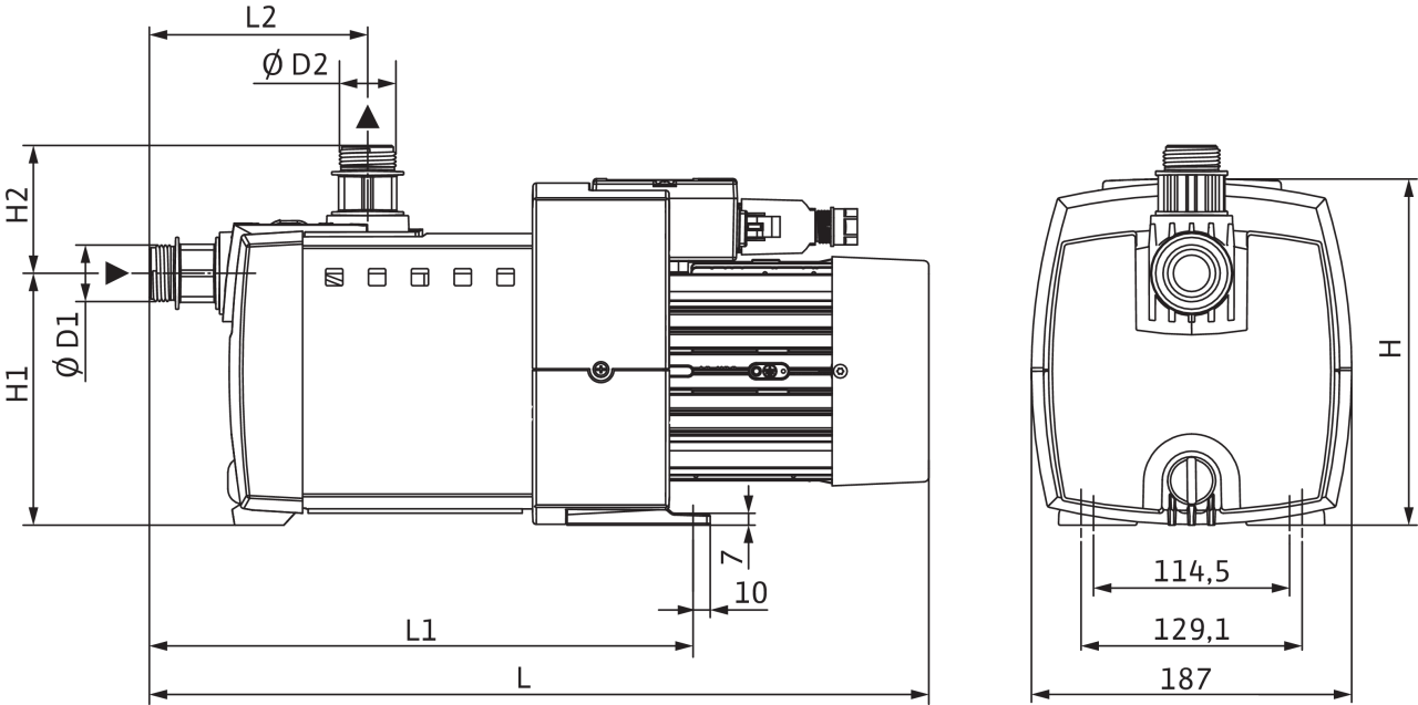 Многоступенчатый горизонтальный центробежный насос с сухим ротором, самовсасывающий, с непосредственно прифланцованным электродвигателем. Не требующее техобслуживания скользящее торцовое уплотнение в месте прохода вала.
