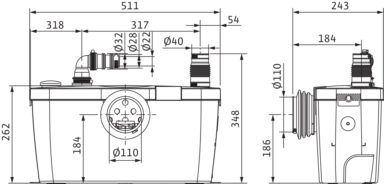 Готовая к подключению автоматическая напорная установка для отвода сточных вод с низким уровнем шума согласно стандарту EN 12050-3 со всеми необходимыми переключающими и управляющими устройствами.
