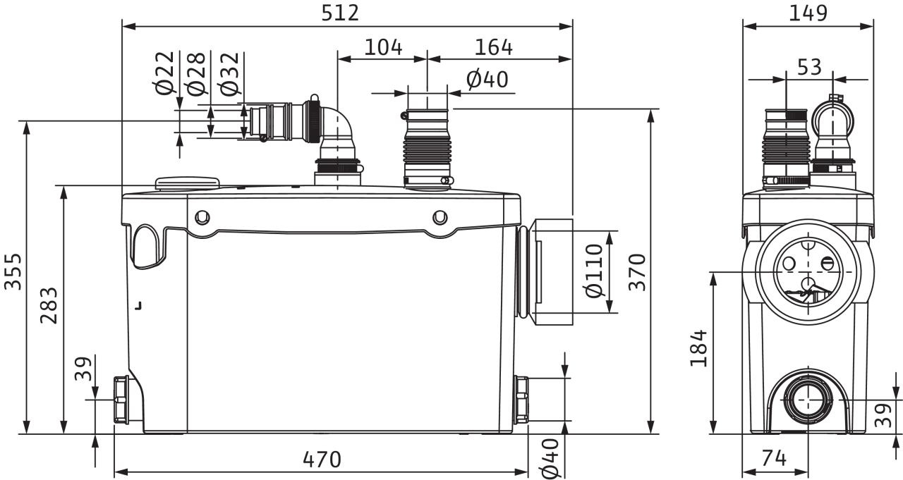 Особенно узкая, готовая к подключению автоматическая напорная установка для отвода сточных вод с низким уровнем шума согласно стандарту EN 12050-3 со всеми необходимыми переключающими и управляющими устройствами.
