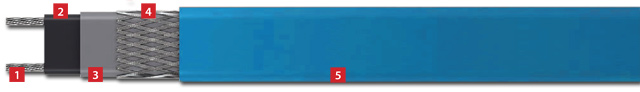 Саморегулирующаяся электрическая нагрева-тельная лента для защиты от замерзания или поддержания заданной температуры трубопроводов и емкостей, в том числе во взрывоопасных зонах.