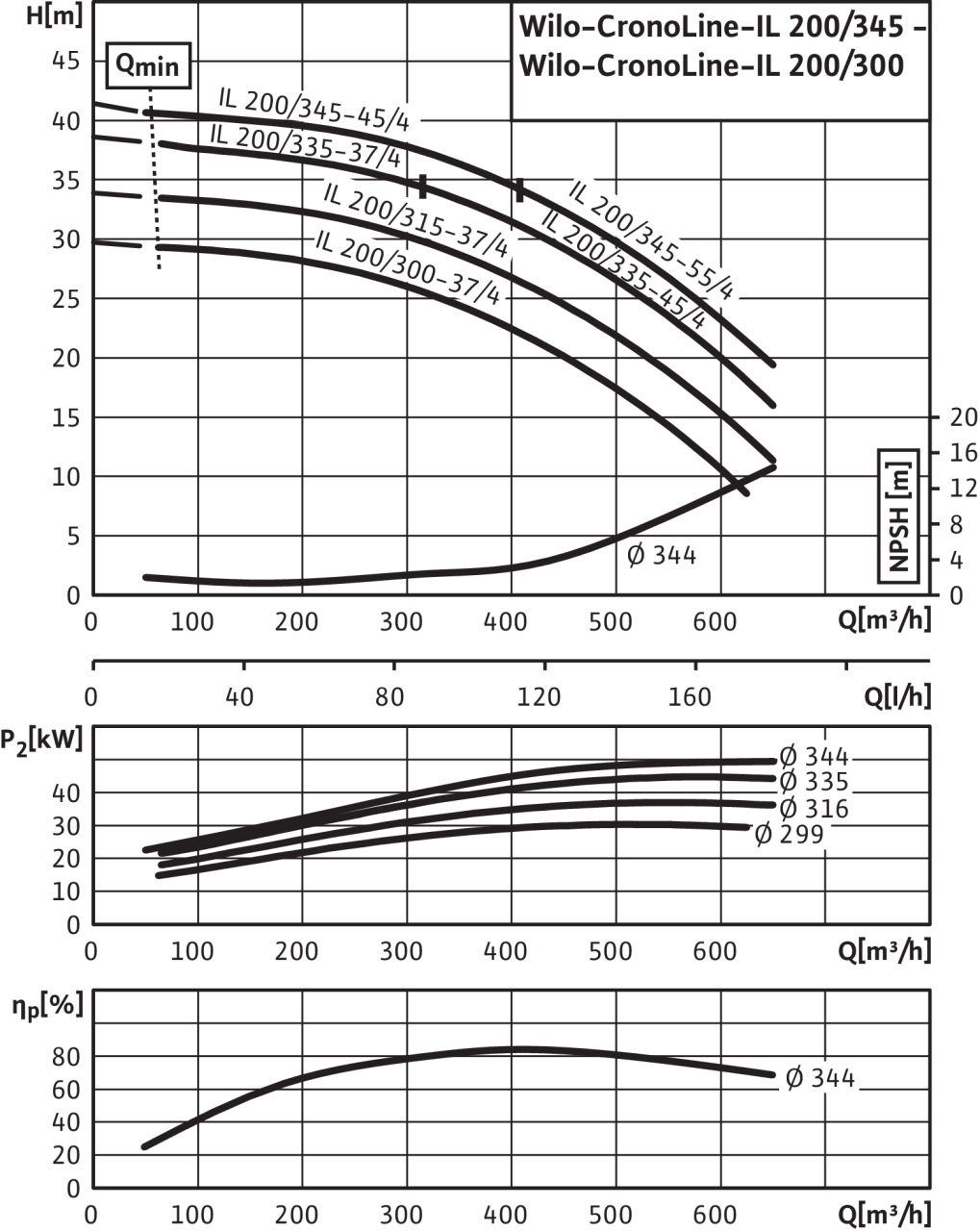 Насос с макс. диаметром рабочего колеса для определения MEIIL200/345-55/4