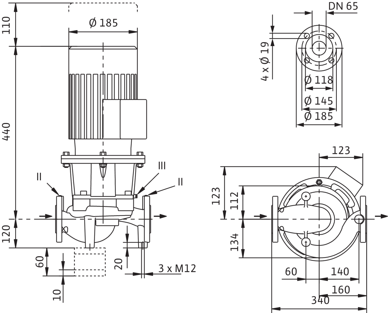 II отверстие для измерения давления R1/8; III удаление воздуха R1/8