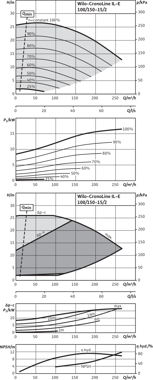 • Интерфейсы: управляющий вход «Выкл. по приоритету», «Внешняя смена насосов» (действует только в режиме работы сдвоенного насоса), аналоговый вход 0–10 В, 2–10 В, 0–20 мА, 4–20 мА для ​режима управления (DDC) или дистанционного регулирования заданных значений, аналоговый вход 0–10 В, 2–10 В, 0–20 мА, 4–20 мА для сигнала текущего значения датчика давления, IR-интерфейс для беспроводной связи с устройством управления и сервисного обслуживания – IR-картой памяти/IR-монитором Wilo, разъем для IF-модуля Wilo для связи с автоматизированной системой управления зданием, настраиваемая беспотенциальная система оповещения о неисправностях, эксплуатации и готовности, интерфейс для связи со сдвоенными насосами