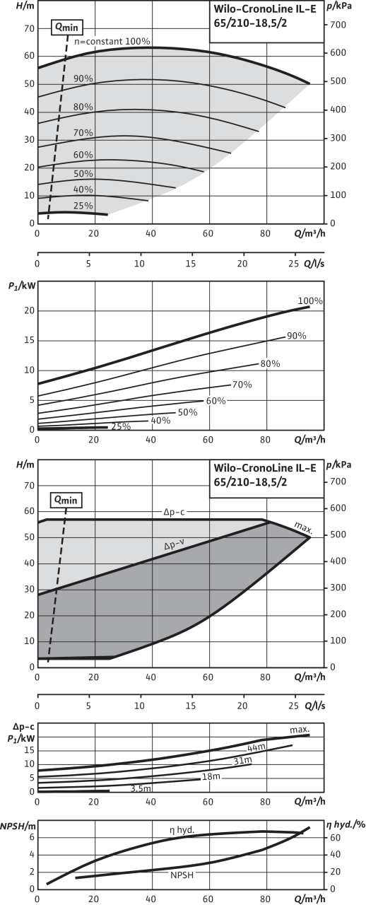 Насос с макс. диаметром рабочего колеса для определения MEIIL65/220-22/2