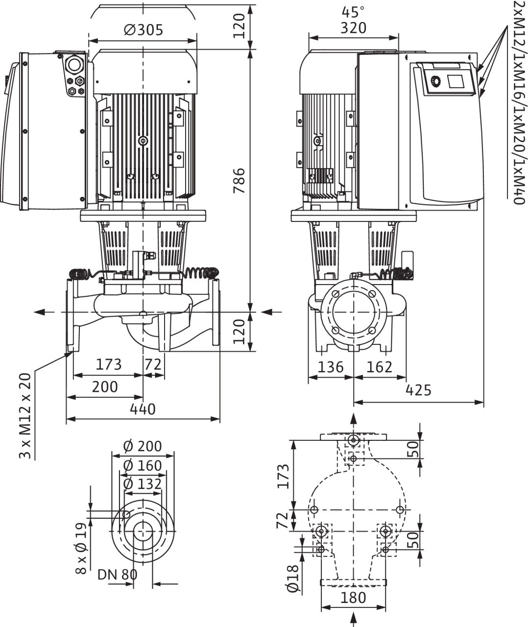 Диапазон температур при макс. температуре окружающей среды +40 В°C-20...+140 В°C (в зависимости от перекачиваемой среды)